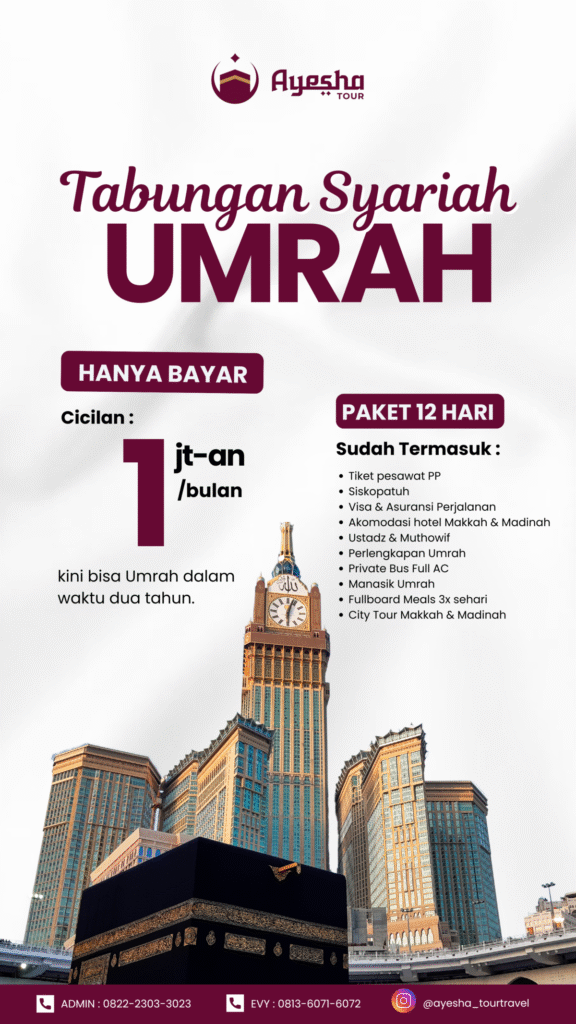Melalui program Tabungan Syariah Umrah, Anda tidak perlu menunggu memiliki biaya besar sekaligus. Dengan cicilan ringan mulai dari 1 juta rupiah per bulan, Anda sudah bisa mempersiapkan perjalanan spiritual menuju Tanah Suci, tanpa rasa khawatir dan tetap sesuai dengan prinsip syariah.